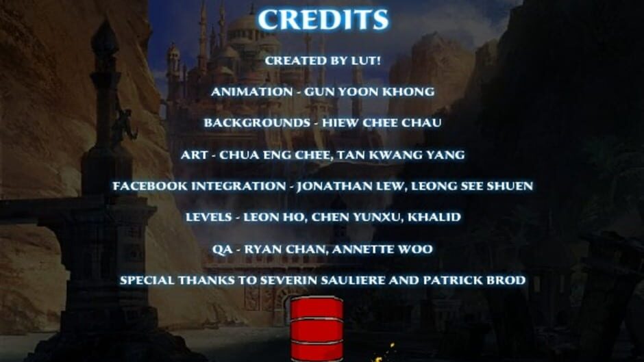 Prince of Persia: The Forgotten Sands is a promotional browser flash game created to promote the Prince of Persia: The Forgotten Sands. Playing the game unlocked a costume in the main game, though that feature no longer works. The game is still playable on explosivebarrel.net The game consists of six short stages. It is an auto runner where prince must dodge traps and attack enemies. On the first stage, Prince only has time rewind power after death. The second stage introduces a boss battle where Prince has free movement. From the third stage onward the bosses can only be damaged by the elemental attacks. The elemental powers are different on each stage. The second stage Prince has also dash power. Third stage swaps the dash for freezing power. Fourth swaps the freeze for fire shield and attack. The fifth stage swaps from fire to earth shield. The final stage is a boss stage where Prince can freely swap between the four powers and only the matching color on the boss' chest damages the boss