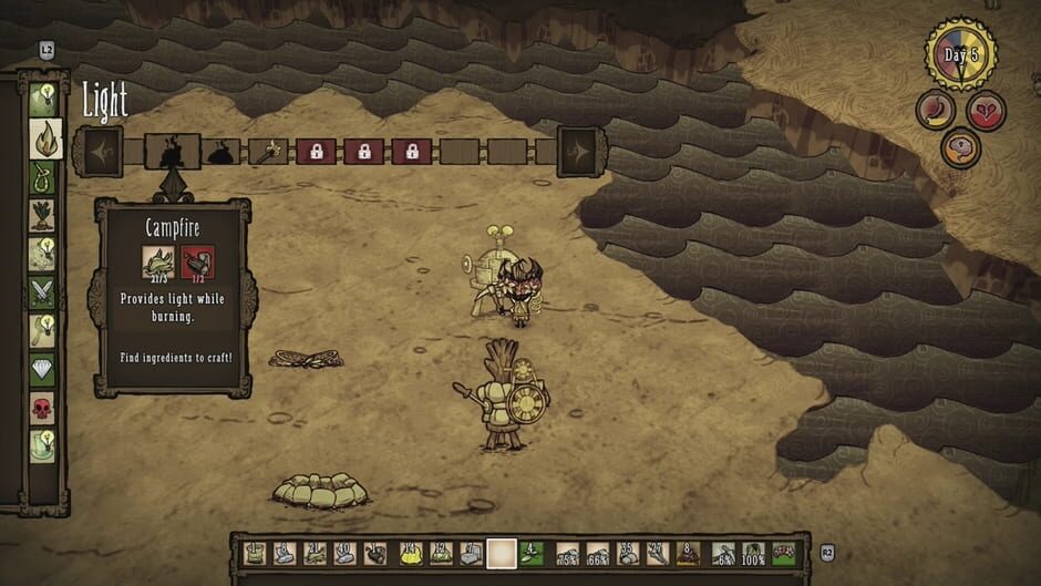 Don’t Starve is an uncompromising wilderness survival game full of science and magic. You play as Wilson, an intrepid Gentleman Scientist who has been trapped by a demon and transported to a mysterious wilderness world. Wilson must learn to exploit his environment and its inhabitants if he ever hopes to escape and find his way back home. Enter a strange and unexplored world full of strange creatures, dangers, and surprises. Gather resources to craft items and structures that match your survival style. Play your way as you unravel the mysteries of this strange land.